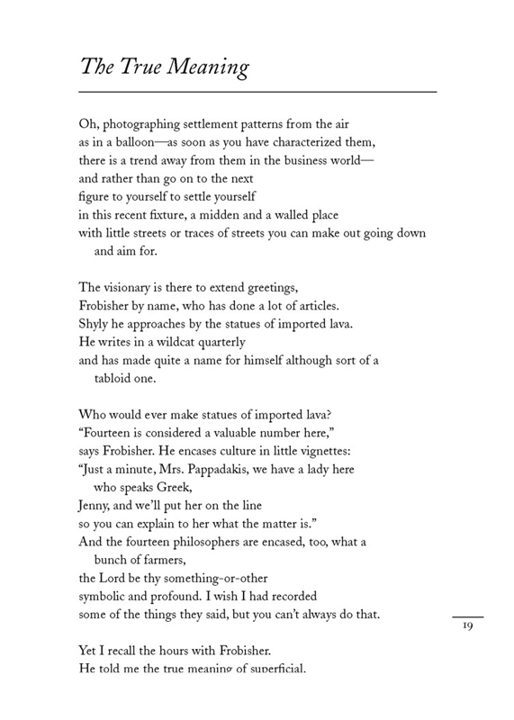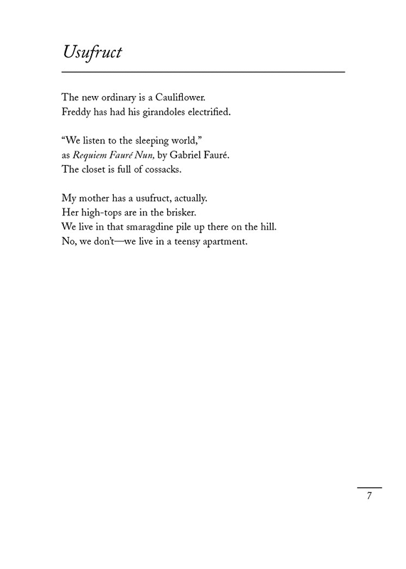 Here’s a poet who takes herself with a grain of salt. This is vital, graceful silliness reminiscent of Marianne Moore or John Ashbery....Her poems invite the more intellectual emotions: bemusement, the breathlessness of newborn understanding. They’re a treat for anyone who likes to have her brainstrings tugged.