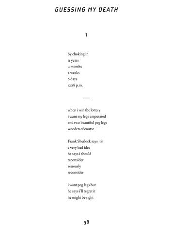 The (Soma)tic Exercises are innovative and crucial to our art form—they both invent a new genre and help increase freedom from the double tyrannies of both the tired narrative form and short, personal lyric form. Conrad must be one of the most original practitioners of poetry forging new territory.