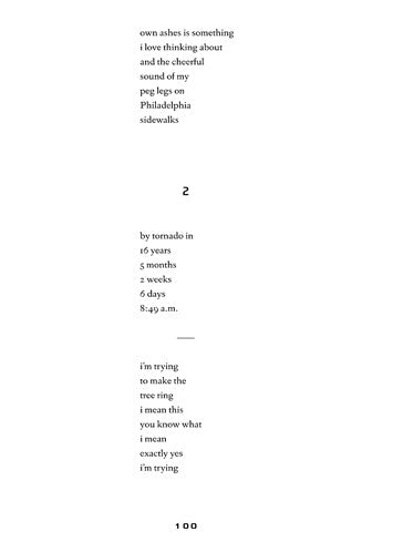 Since their 2005 inception, CAConrad’s (Soma)tic exercises have been summoning the whole spectrum of human experience in the name of poetry. A Beautiful Marsupial Afternoon collects 27 new and previously published exercises and their emerging poems, incorporating unorthodox steps in the writing process from the tangible everyday to the cosmos of the imagination. Together they manifest as an urgent call for a connective, concentrated, and unfettered creativity. -