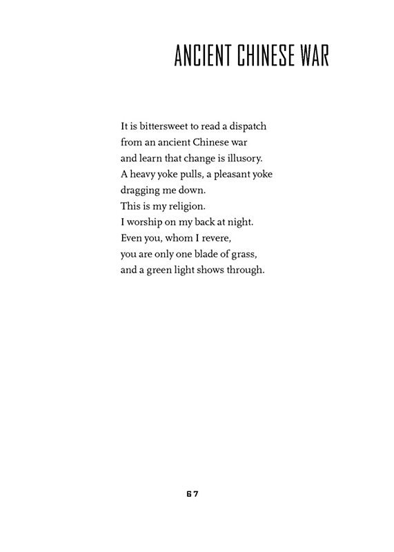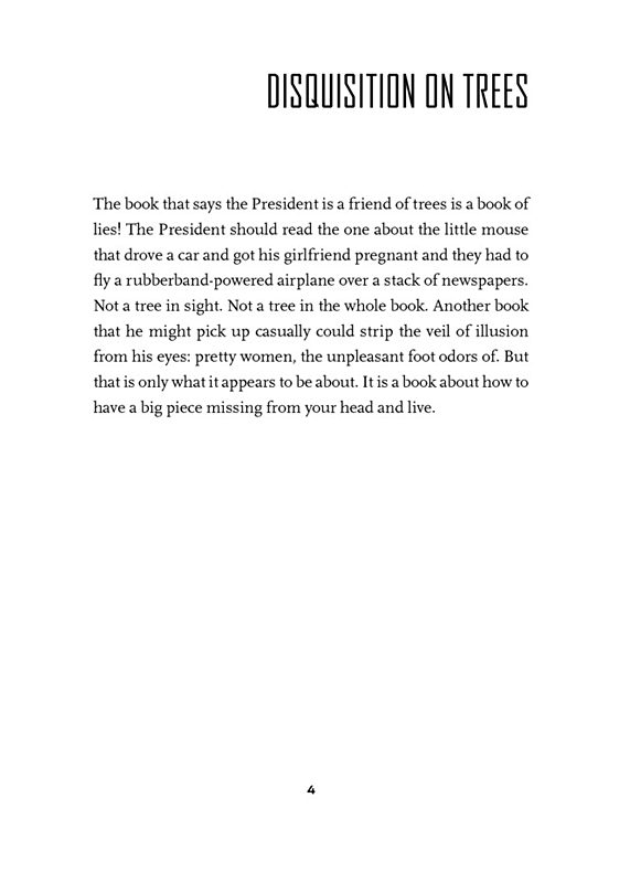A Green Light is in fact Rohrer’s timeliest book to date, and it reminds us that a measure of irony can keep us from being duped by those in power, from falling prey to rhetoric: “The book that says the President is a friend of trees is a book of lies!... It is a book about how to have a big piece missing from your head and live.”