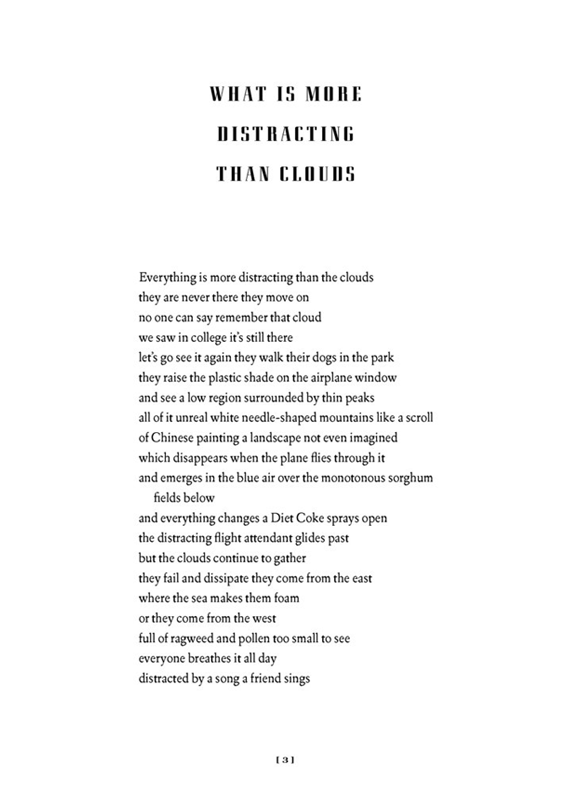 When Rohrer’s unpunctuated, paratactic style works, it works brilliantly; when he falters, it is a faltering born of a new sincerity the world (of which readers are a part) renders suspect, as a form of (good-natured) vice. These poems—and the oeuvre of this poet—deserve careful readings, and re-readings, to train ourselves to perform John Cage’s ironic challenge: to see what it is we’re looking at, and to feel what it is (if anything) we feel.