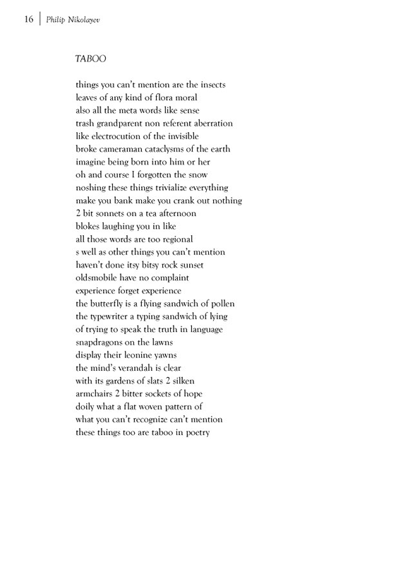 Of Nikolayev’s accomplished first book, Robert Kelly writes: “Nothing escapes his formal insistence to renew... A wild, generous book, full of invention.”