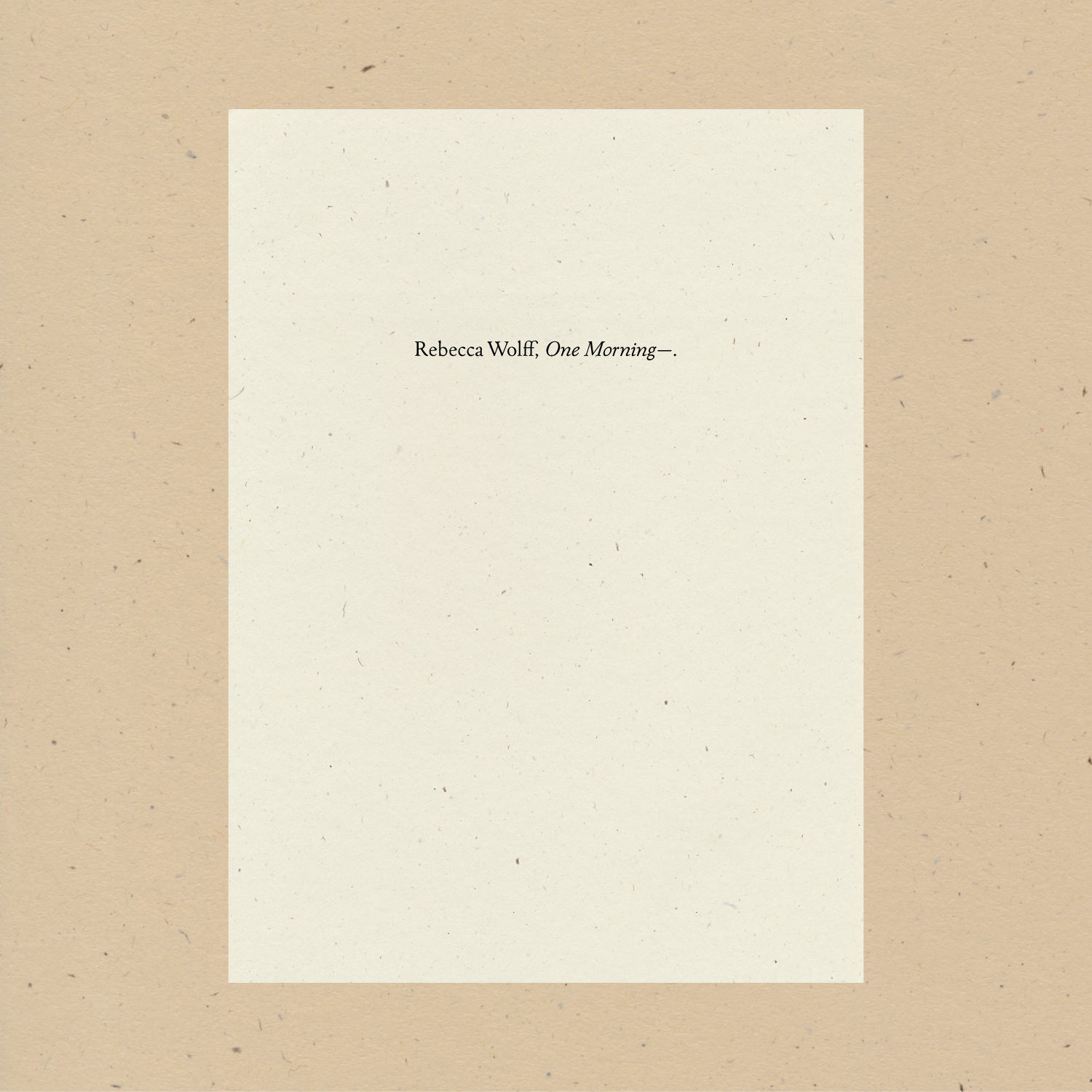 - Poet, novelist, and Fence founder Rebecca Wolff’s internal monologue made external in poetry is uncanny. Her musical and darkly funny fourth collection, One Morning—, spans language, culture, art history, love, passion, grief, consumerism, environmental devastation, and the ekphrastic experience of pop and high culture. She experiments with torque, energy, narrative—two steps ahead of herself with the reader on her heels.