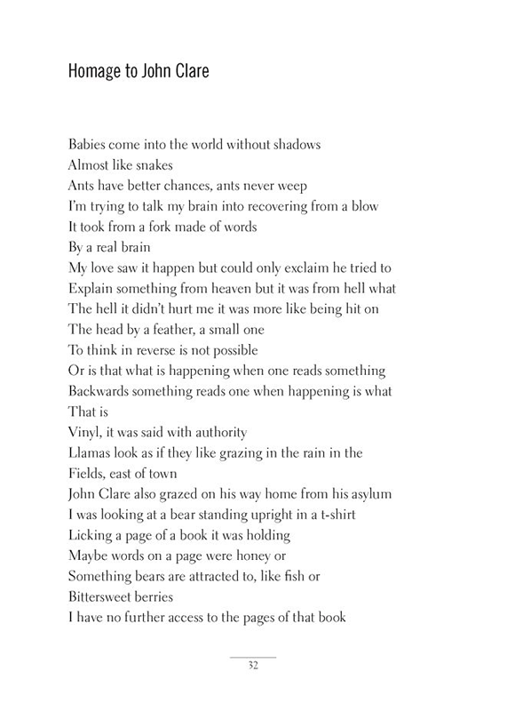 Wier seems to bypass traditions of narrative and the surreal to communicate the loss of sense, politically, patriotically. She uses vertiginous distances, and quiet allusions and metaphors from nature and the shapes of thought. All these qualities add up to a lyrical interrogation of America, one devoid of pop diction, and cluttering references.