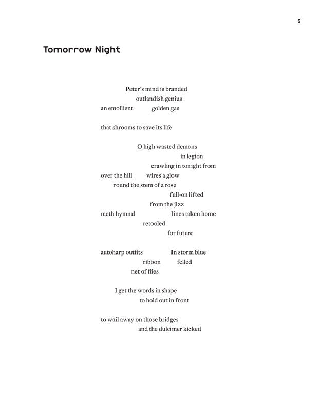 Publishers WeeklyFortunately, Sigo’s work, though often investigating (and appearing bound to) that history of American Poetry, also frequently appears to be operating beyond it. Beyond those poets and that lineage is Sigo himself, his critically-thinking mind, which floats above and toward an ethereal other space.
