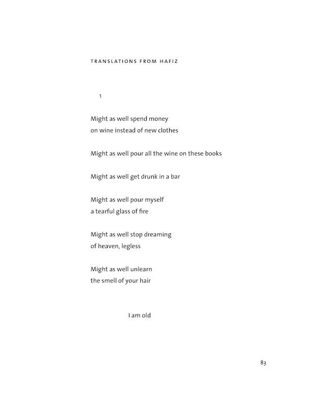 Written partly in the vein of Hafiz and of haiku poets like Kobayashi Issa and Basho, Surrounded by Friends brims with beautifully brief lines and images that stick in the mind.