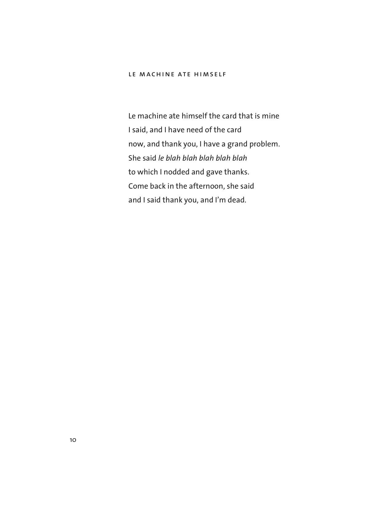 ...Rohrer uses the poetics of the mundane, seizing everyday sights, sounds, and experiences to capture fragments of deeper meaning. There are poems that portray park scenes, crazy people on the subway, and ants run amok. But even when a poem ends seemingly unspectacularly, its cumulative effect demands rereading, until a blurry blend of images coalesces into beauty.