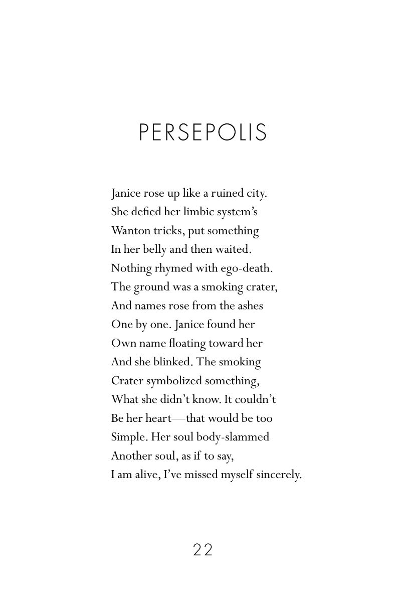 This new world she’s created for us to move around in is so different from her other books and yet, like all visionaries (which I unabashedly say she is), this book is the logical and luminous next step a career that has already produced some of the most challenging, daring and compassionate poems I’ve read. I’m thankful for it.