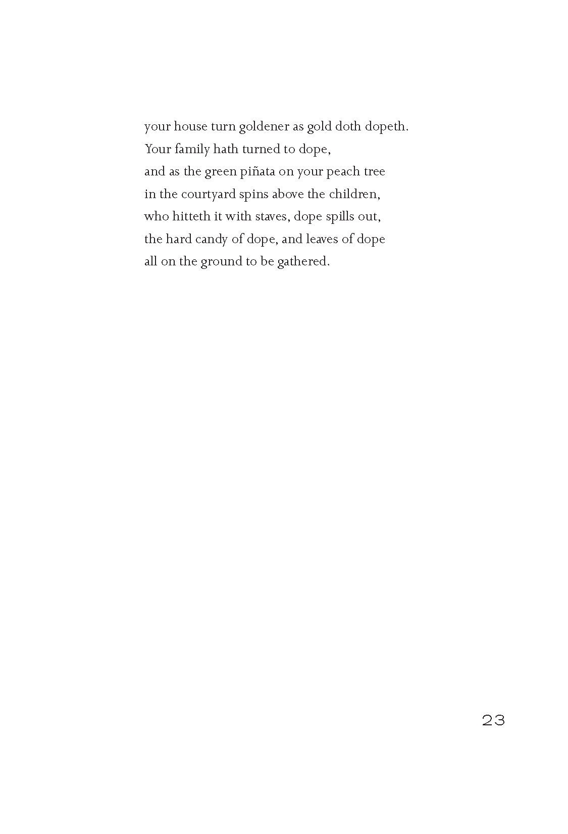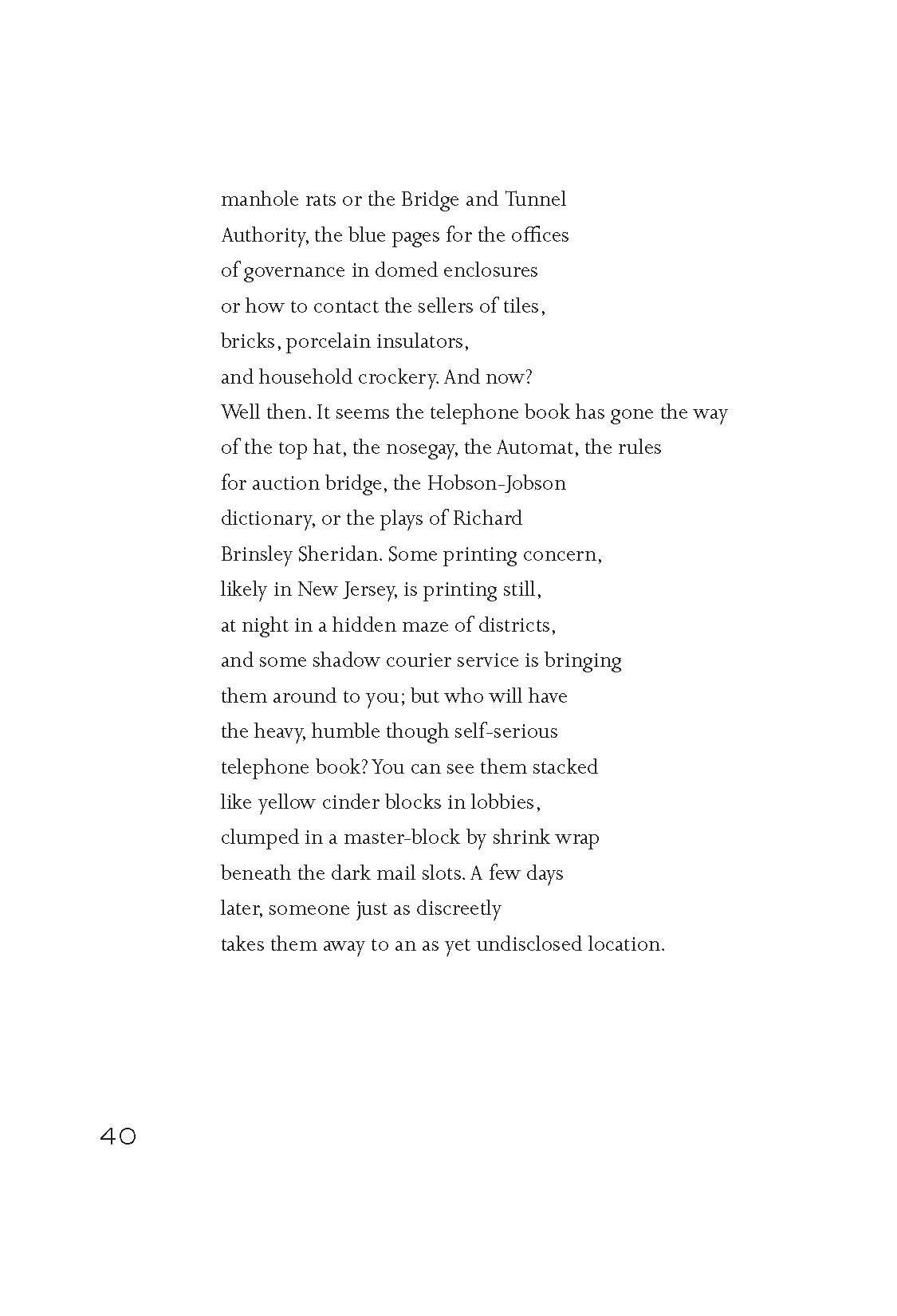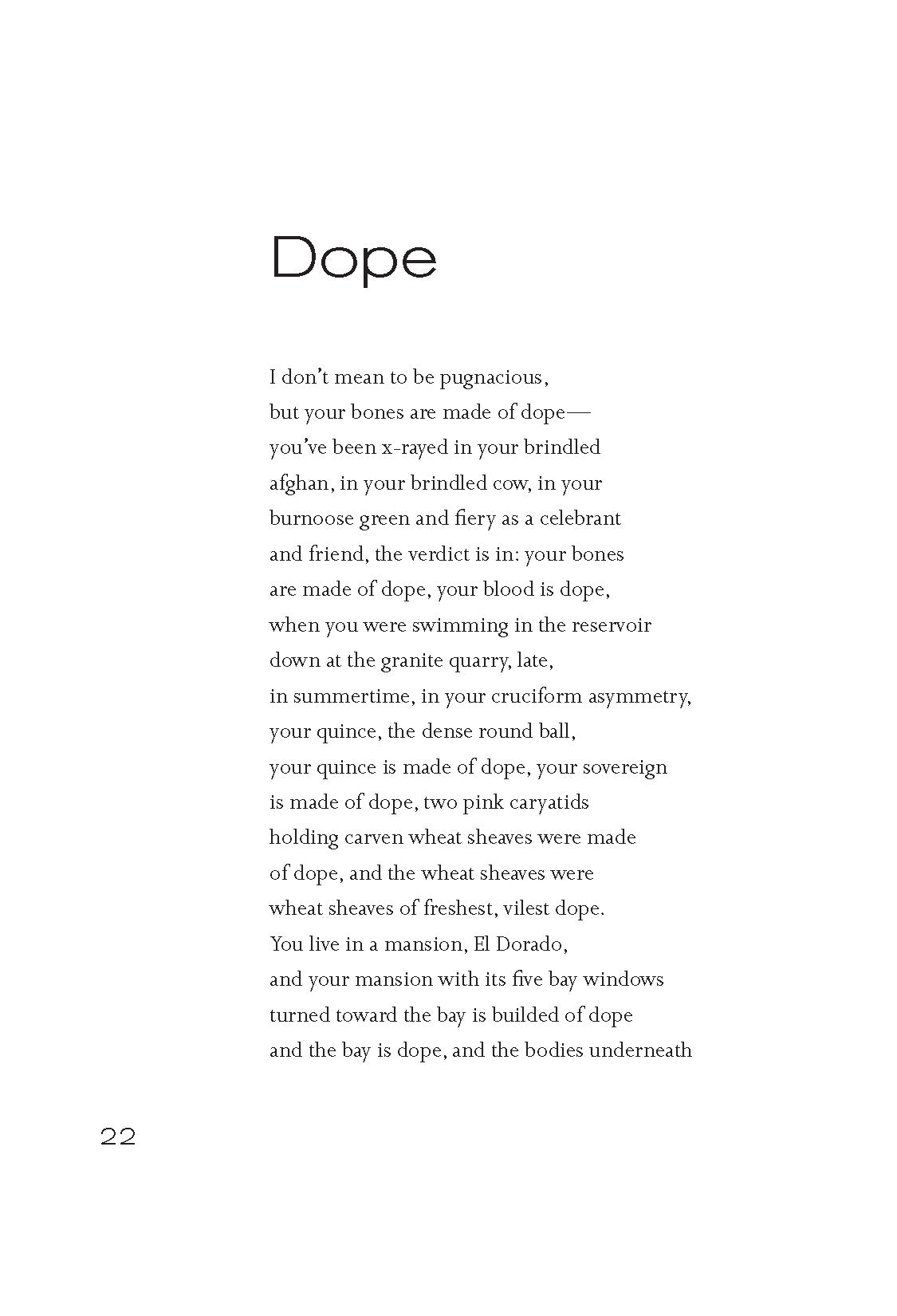 Whatever’s smuggled into these poems—the Petronas Towers, Afghanistan cliffs, Lugers and New Jersey—obeys the abstract logic at the heart of descriptive writing: the sweet ease of writing’s intangibility, its virtual tease.
