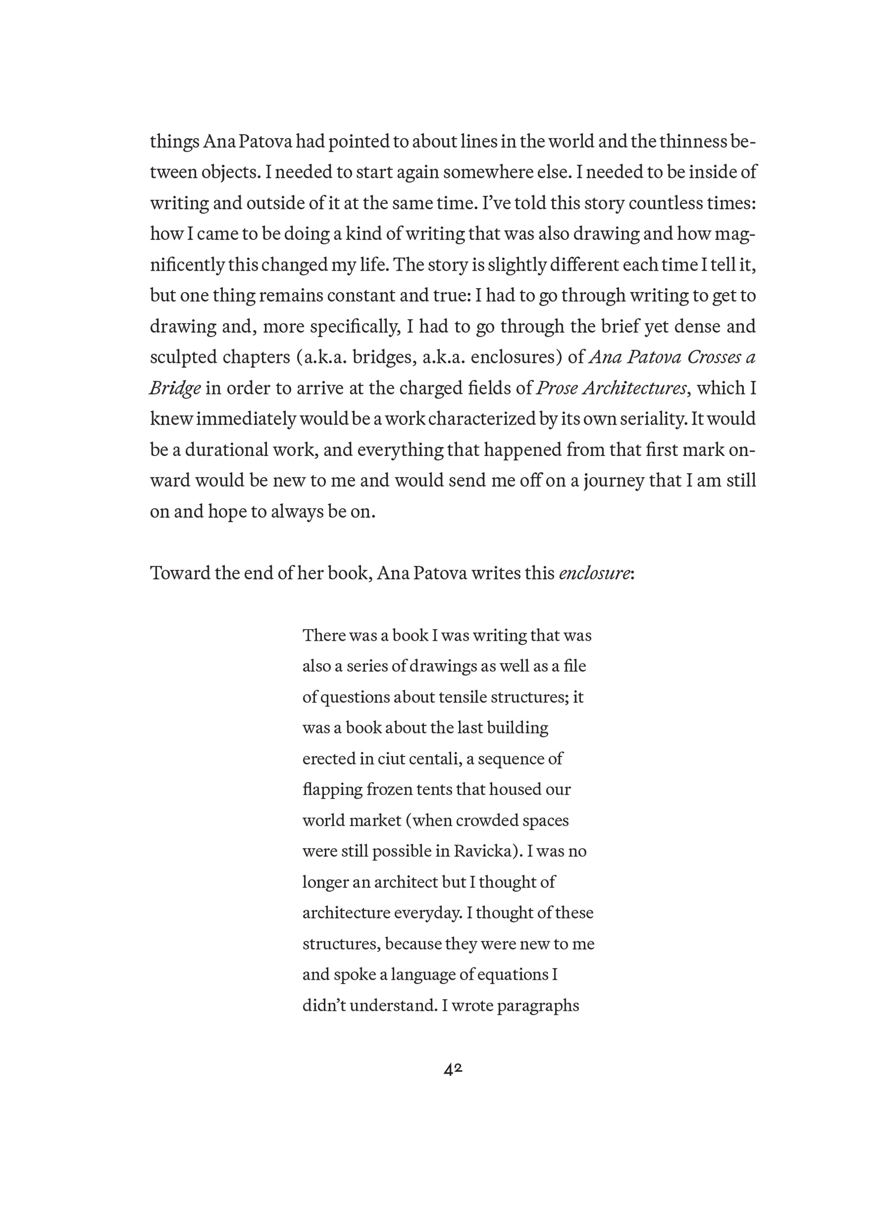 She uses architecture as a metaphor for essay-building, poem-building, idea-building, language as a built environment and as a space of community. The ability of a sentence to create and transform is boundless.