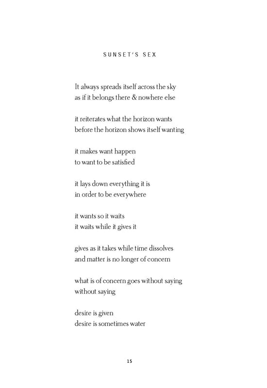 The poems in this collection examine power structures, as well as what is gained, given and taken through the process of literature, both as reader and practitioner, with ideas occasionally suggesting as proxy for living and being in the world.