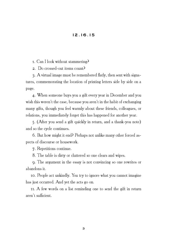 Though the poems are awash in the quotidian—buying gifts, planning travel, filling out forms, child care—they read like the textual record of a sensitive mind working through the “thoughts surrounding” the daily demands that make up a life. Such thinking, for Browne, is tinged with an acute awareness of our inevitable mortality.
